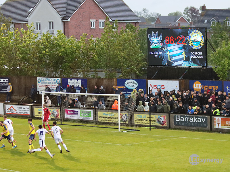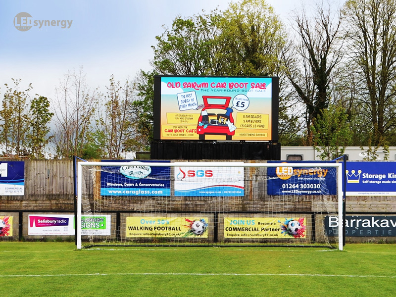 At a football stadium or football ground, sports LED displays and LED scoreboards can be installed at each end of the pitch for greater effect if budget allows, or as a single display at the half-way line.